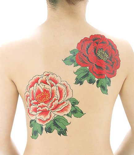タトゥーシール 大型・赤牡丹