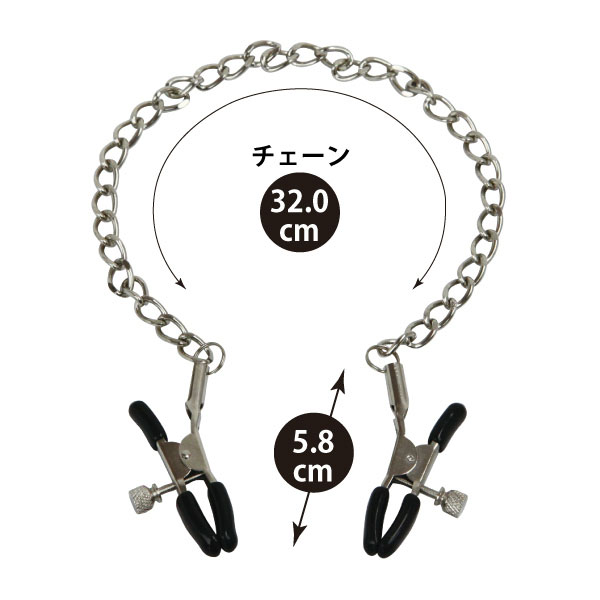 ネジで強弱の調整が可能!2つのクリップを1連チェーンで繋いだ、クールな乳首クリップ。