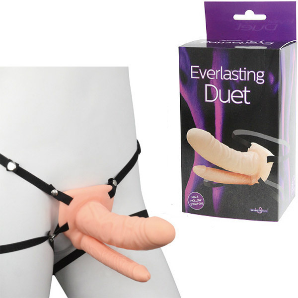 ●大小二本のリアルなペニス型●ヴァギナ用は中が空洞なので男性も装着可●空洞内部はソフト樹脂で優しくコーティング●4点を固定して装着するベルトタイプ。