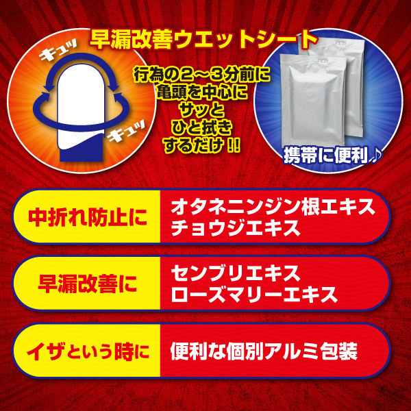 早漏改善ウェットシート「持久王 2枚入りウェットシート」。