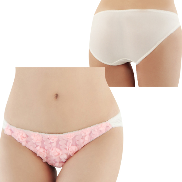 ●ナチュラルなアイボリーカラー●フロント一面にはピンクローズ●立体加工でリュクスな雰囲気に●ヒップ全体を覆うフルバック。
