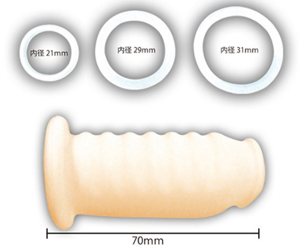 パッケージ:19.5×12.3×4.0cm 本体:スリーブ全長7.0cm・リング内径(小2.1cm・中2.9cm・大3.1cm)