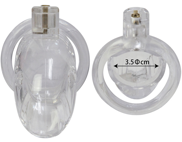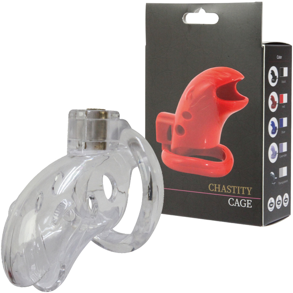 中の様子が見て分かる!透明ケージ&固定リングで勃起を抑制するプラスチック製の男性用鍵付き貞操帯。