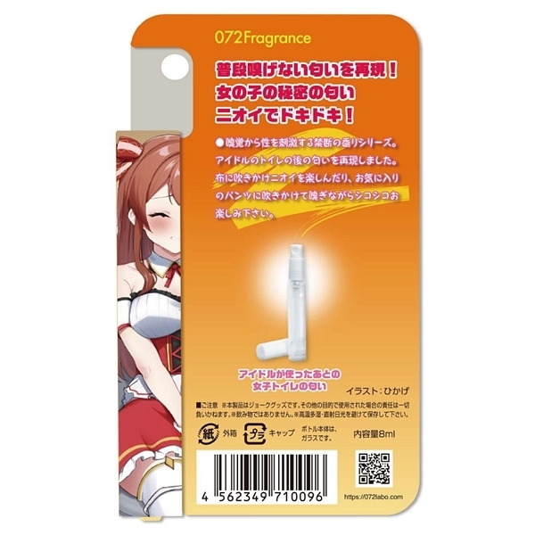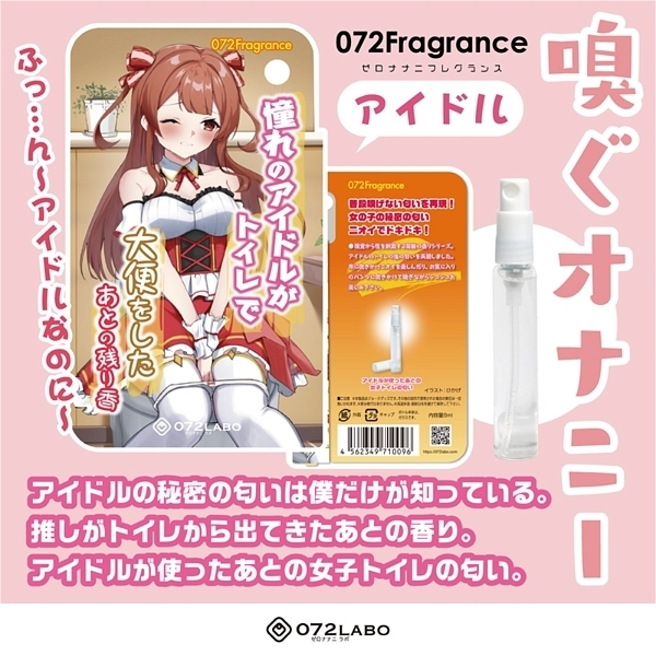 普段は決して嗅ぐ事のできない秘密のフェチな香りを再現!嗅覚から性を刺激する禁断の香りシリーズから、アイドルのトイレの後の匂いを再現したグッズが登場しました♪布に吹きかけニオイを楽しんだり、お気に入りのパンツに吹きかけて嗅ぎながらシコシコ楽しもう!嗅ぐオナニーであなたの性活を応援します♪
