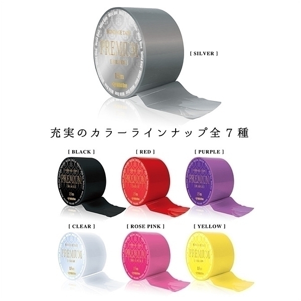 SMプレイの必須アイテム<ボンデージテープ>!気分で色を変えたいお客様の声にお応えし女体を彩る業界最多の7色をラインナップ!ノリを使わない万能テープで服や髪・肌を傷めず、お手軽カンタン拘束プレイ!濡れてもくっつく不思議な万能テープ科学の力でテープ同士が吸着。