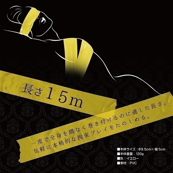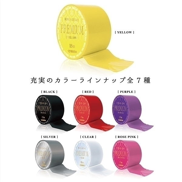 SMプレイの必須アイテム<ボンデージテープ>!気分で色を変えたいお客様の声にお応えし女体を彩る業界最多の7色をラインナップ!ノリを使わない万能テープで服や髪・肌を傷めず、お手軽カンタン拘束プレイ!濡れてもくっつく不思議な万能テープ科学の力でテープ同士が吸着。