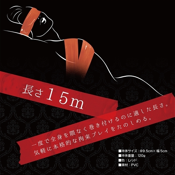 SMプレイの必須アイテム<ボンデージテープ>!気分で色を変えたいお客様の声にお応えし、女体を彩る業界最多の7色をラインナップ!ノリを使わない万能テープで服や髪・肌を傷めず、お手軽カンタン拘束プレイ!誰でもSMプレイを楽しめる今、とりわけ注目を浴びているのが、この幅広な拘束テープ。