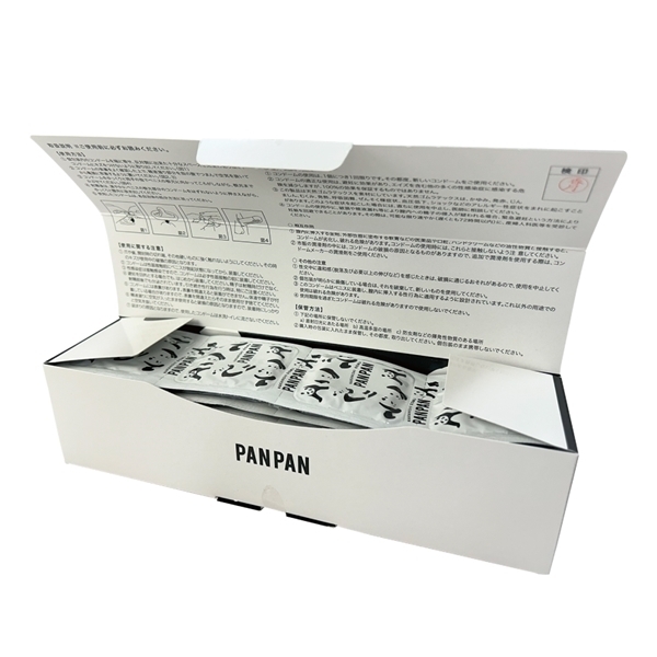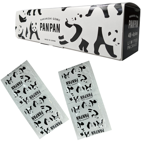 胴細形状による脱落・逆流防止機能と、両面ゼリー加工が施されており、安全にご利用いただけます♪見た目は普通の商品パッケージのようで、コンドームとは分かりにくいデザインが特徴!可愛いパンダのイラストがプリントされており、プレゼントやサプライズにも最適です♪製造は、業務用コンドームでNo.1の売り上げを誇る中西ゴム製。