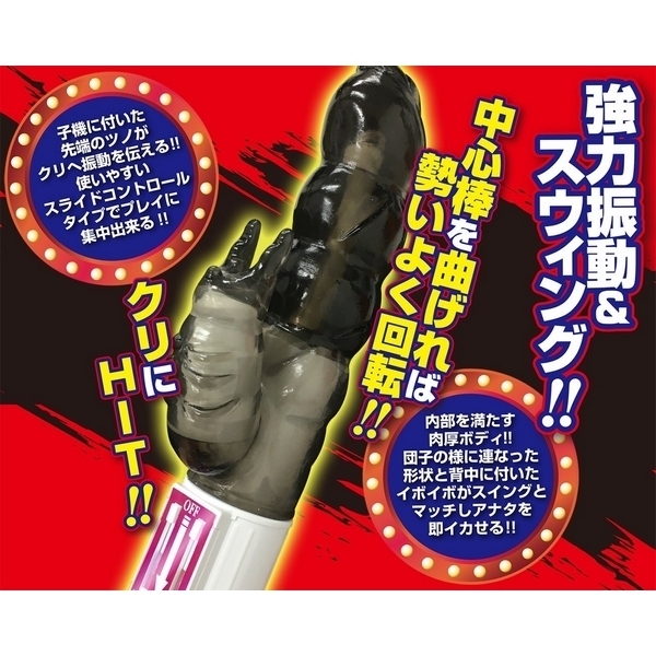 ●逞しいスモークブラックボディ●膣を満たす最大径4.3cmの極太●団子のような凸凹+背面イボ●膣をかき乱す力強い回転刺激●クリバイブ先端に二股のツノ●小刻みに振動してクリにHIT●無段階スライドコントロール●振動&回転は個別に操作可能●安心安全の日本製。