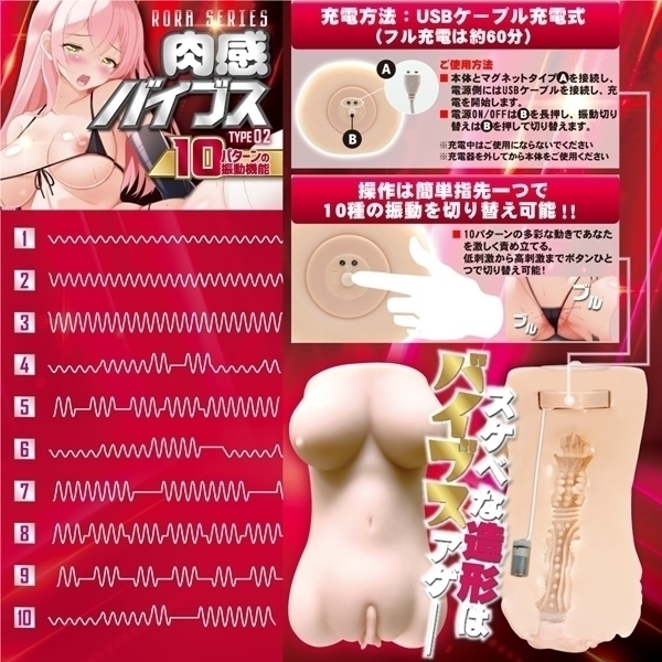 圧倒的肉感と強力ローターのブルブル超振動!多彩な振動パターン搭載のローター内蔵ホール。