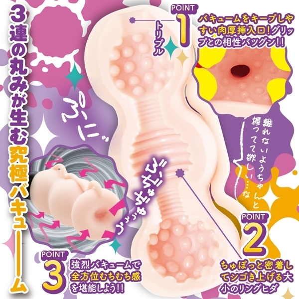 独自の設計でしっかり握れる非貫通オナホです♪特徴的なフォルムが生み出す強力なバキューム構造により、心地よい吸引感を実現します!グッと握ることで空気が抜け、内部の吸引力が増し、より密着感のある使用感が楽しめます♪内部はイボとヒダの混合タイプで、異なる触感が重なり、リズムある心地よさを提供します!ハンドストラップを指に通せば、持ちやすく安定感も抜群♪素材にはもっとふぃっとを採用し、柔らかくフィットする質感で快適な使い心地です!洗練されたデザインで、日常のリフレッシュタイムをより快適にサポートします♪清潔に保ちやすく、長く愛用できる設計です!