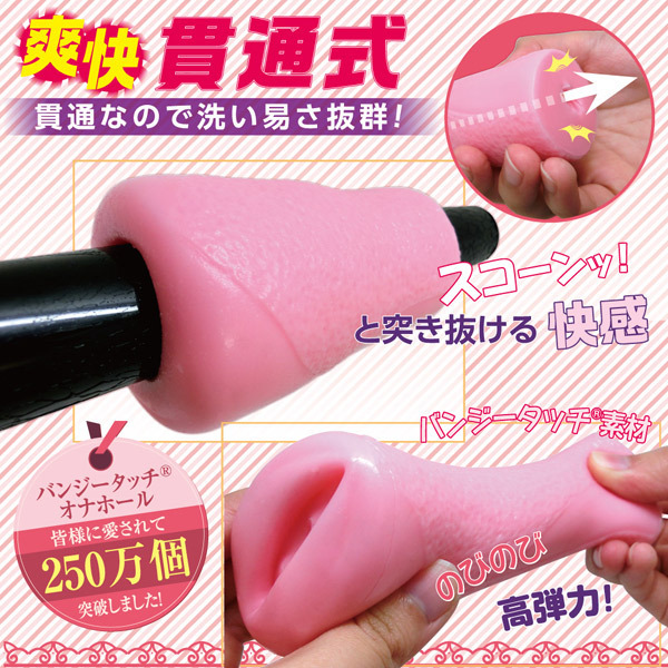 ●バンジータッチ素材使用●高弾力なむっちりボディ●ネバネバ快感のヒダ肉壁●無造作ヒダが生む粘膜感●洗いやすく清潔な貫通型。