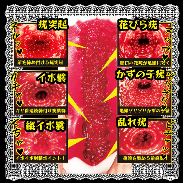 粒々イボ突起で締め付けながらクリクリと刺激、カズノコ壁で亀頭を責め立て快感を限界まで高める!重さは380g、外中で異なる二重構造仕様◎直筆サイン刻印入り