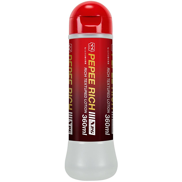 ローションの王道ペペブランドから濃厚なテイストのペペRICHが登場!濃厚なねっとり絡みつくテクスチャでマッサージや愛撫プレイに大活躍♪どってりした濃いめのローションが好みならこれで決まり!ボトルのデザインもかなりスタイリッシュなデザインとなっております。