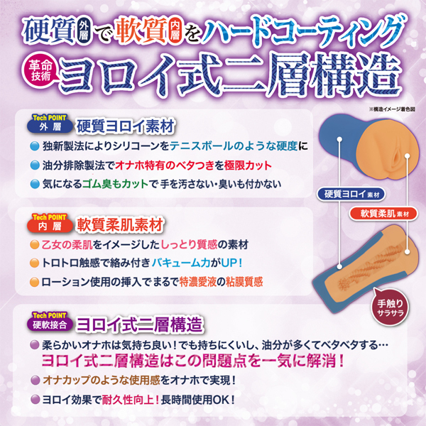 」とお嘆きのあなたに、ヨロイ×乙女の柔肌!硬質素材(外層)で軟質素材(内層)をハードコーティング!見たまんまの分かりやすい構造と刺激特性。