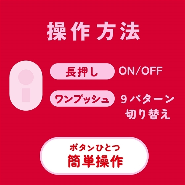 見た目を裏切る超ハイパワーで絶頂快感!肌ざわり滑らかで高品質のサラサラぷにっとヘッドが360度可動するのでぴったりフィットして感度UP!ボタンひとつの簡単操作で多彩な9パターン振動が楽しめる!こっそり遊べる静音設計。