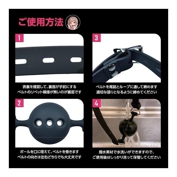 さらに、柔らかめのシリコン素材を採用、柔軟性も高くフィット感もバツグンで、初心者の方でもストレスなく装着しできます!ボールを口に咥えたその姿はとても官能的で、羞恥心を強く煽り、嗜虐性を高めるはず。