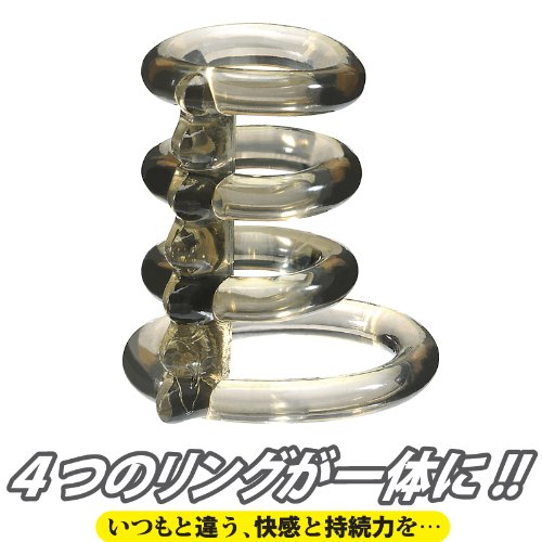 新しい刺激と快感に出会える!男根をしっかりと締め付け、持久力アップを強力にサポートする4連リング仕様の男性補助グッズ。